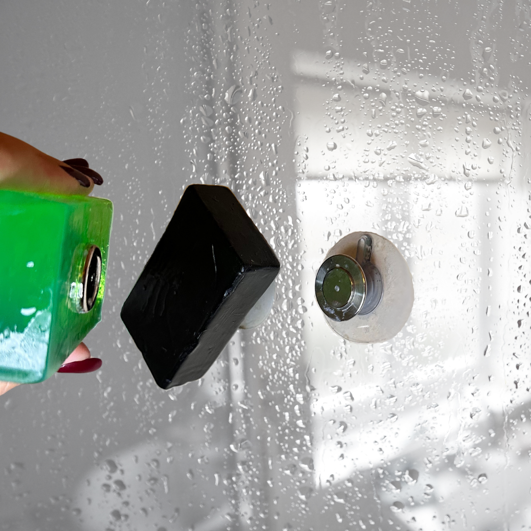 4.  Installez le porte-savon : Le porte-savon est équipé d'un aimant intégré. Il vous suffit de placer votre savon sur la partie aimantée du porte-savon. L'aimant maintiendra le savon en place de manière sécurisée.